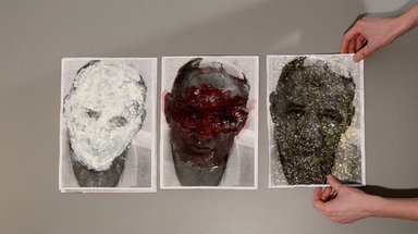 The work "The Wall" consists of individual sequences in which photographies of pieces of wall are the object of simple, physical actions.